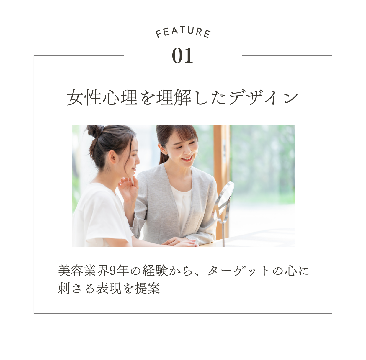 さらに幅広い女性向け案件に対応可能で、美容・化粧品業界で培った知見を活かし、世界観を大切にした集客デザインをご提案します。