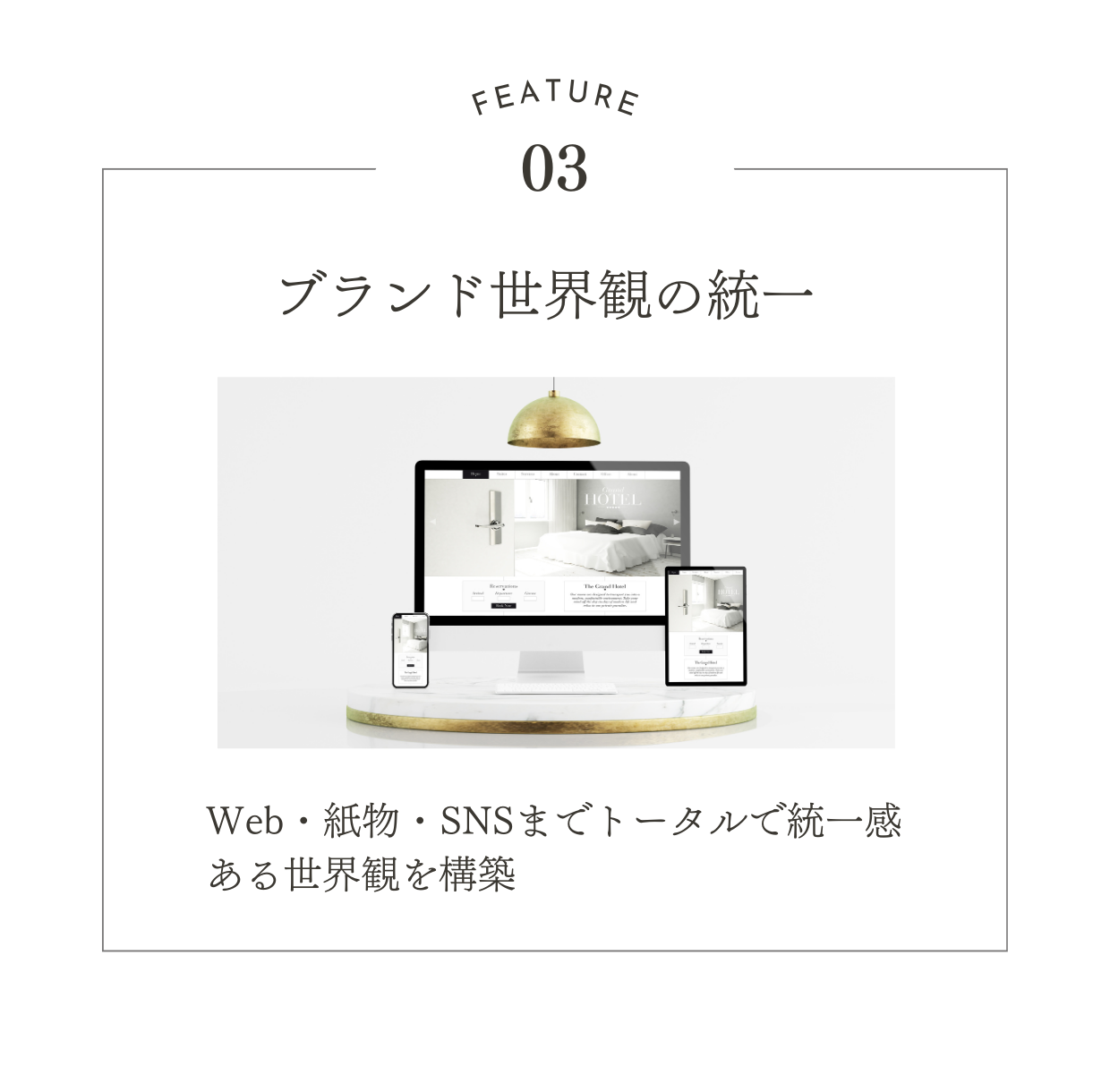 ブランド全体を一貫したトーンでデザインすることで、名刺交換からWeb閲覧までスムーズに世界観を体感いただける仕組みを実現しました。